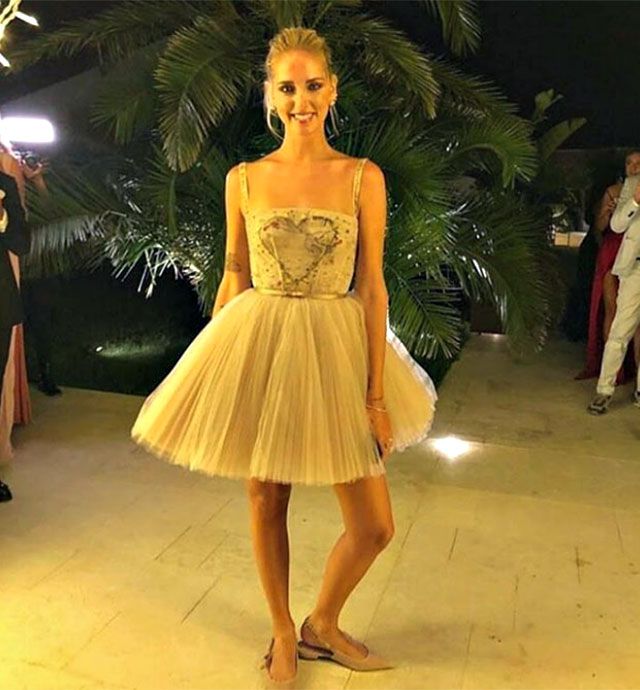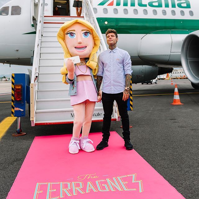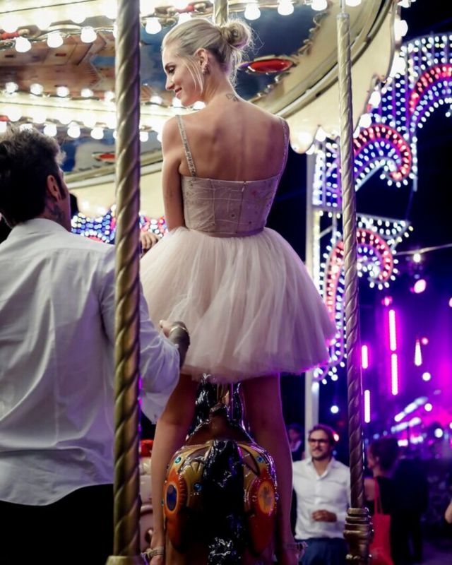 I due sono arrivati alla festa poco prima delle 21, accompagnati da un’auto nera. Fedez indossava una camicia bianca con il logo #TheFerragnez , Chiara invece un abito rosa di paillettes con dettagli oro firmato Prada.