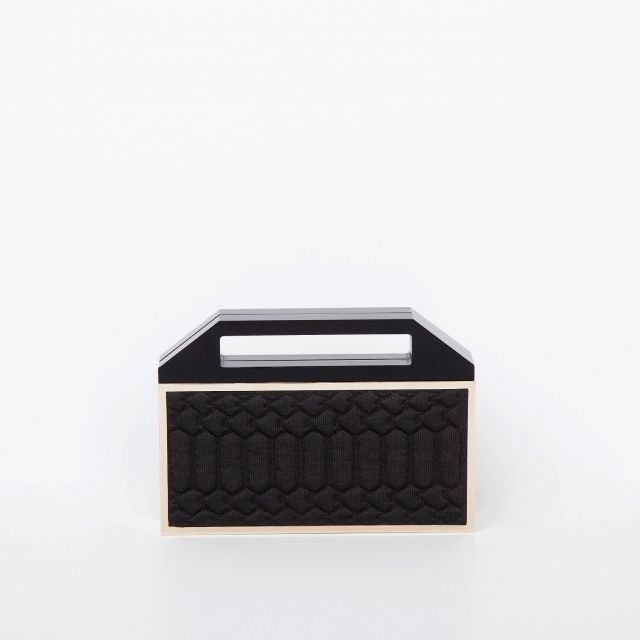 Tradizione e innovazione s’incontrano per creare accessori dai volumi nitidi con profili geometricamente definiti sia nel metallo che nella maglia resa 3D dalla tecnica embossed.