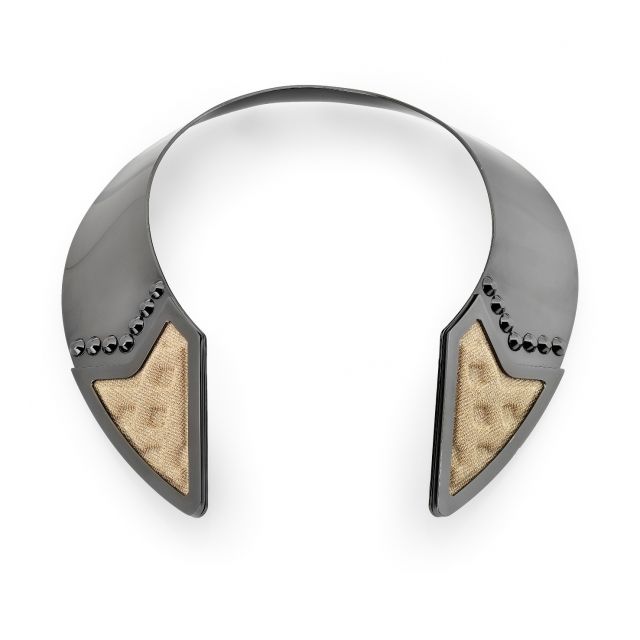 Per dare un tocco di desing al proprio outfit ecco Collane come eleganti colletti metallici a punta, “corazze” design per donne dal gusto deciso e attento alle suggestioni contemporanee