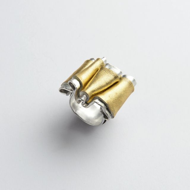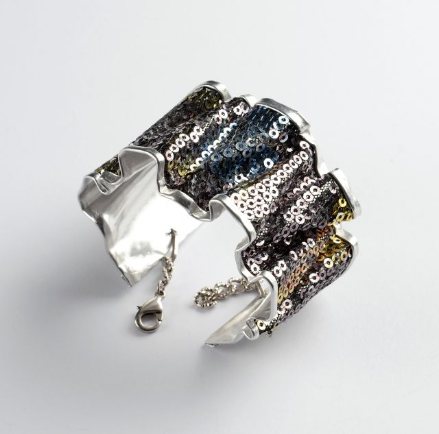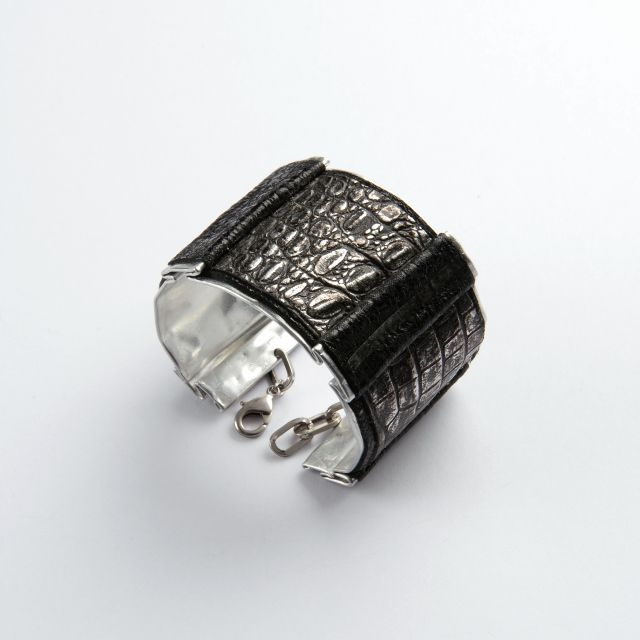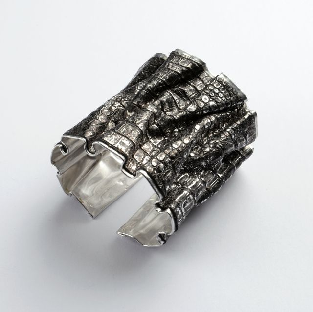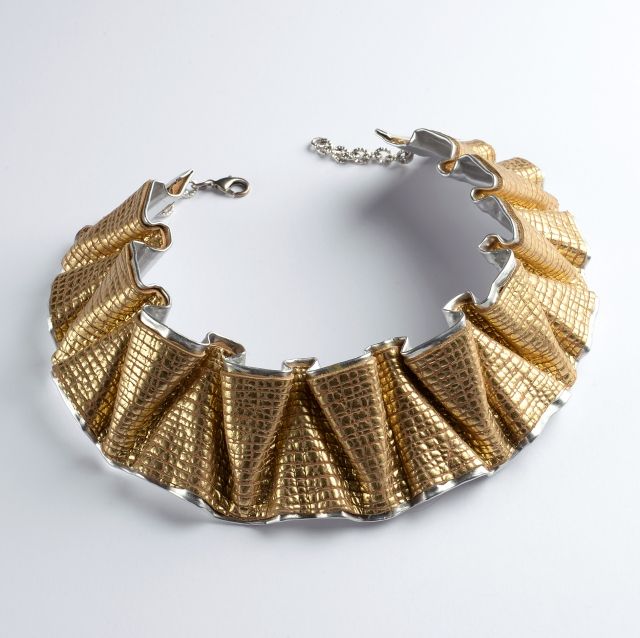 L’ispirazione viene dalla Roma imperiale e dall’Antico Egitto: culture in cui il monile era una chiave essenziale della sensualità femminile. La contemporaneità della linea è riflessa nei materiali: metallo abbinato a pelli o tessuti di riciclo. La lamina metallica, leggerissima, versatile, anallergica e totalmente riciclabile, mantiene una brillantezza invariata nel tempo. La sua plasmabilità genera un continuo senso di movimento e infiniti giochi di luce ed effetti di chiaroscuro che esaltano l’incarnato.