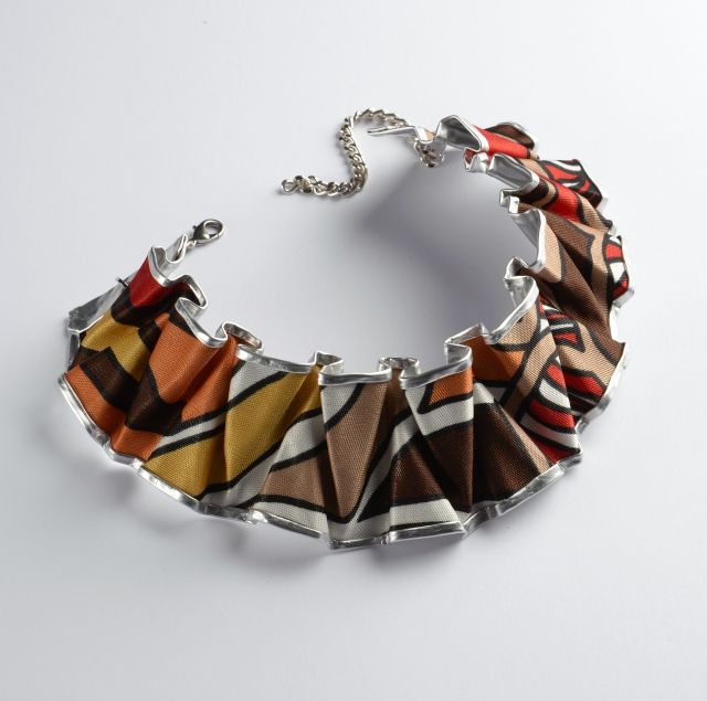La leggerezza e malleabilità della materia la rendono piu’ adattabile al corpo: tutti i pezzi hanno forme ergonomiche. La collezione, anche se di ampi volumi, risulta ultra leggera: peso minimo è di 2 grammi per degli orecchini ad un massimo di 40 grammi una collana. Le pelli pregiate e i tessuti provengono tutti da residui di lavorazione (borse, scarpe e abiti) e trovano così una nuova vita. Non vengono tralasciati neppure avanzi piccolissimi, che possono invece diventare un pezzo assolutamente esclusivo: una delle caratteristiche della linea è che, grazie alla lavorazione artigianale, ogni elemento è unico e irripetibile, così come chi lo indossa.