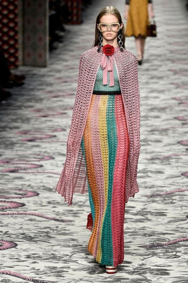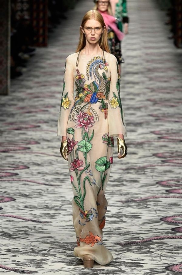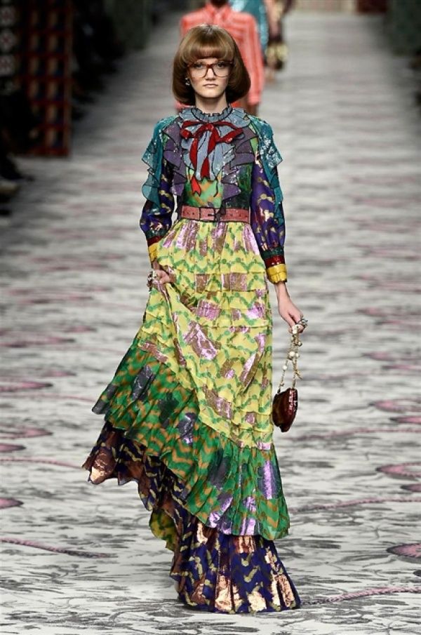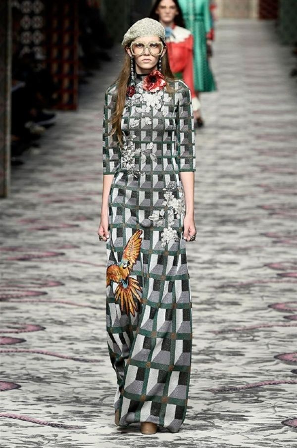 Alessandro Michele pensa una collezione in cui gli abiti si trasformano in mappe psico-geografiche capaci di registrare l´inconscio Ogni oggetto della collezione si offre infatti come un piccolo atlante delle emozioni, uno scrigno prezioso di riferimenti estetici, in cui si intercciano abilmente e con antico fascino disegni, lavorazioni insolite e materiali ricercati.