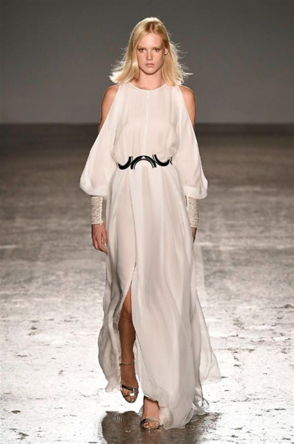 La bravissima Sara Cavazza si è ispirata l´Art Deco´ e gli Anni 80. Colore di punta è il bianco il colore della purezza e della luce che in quegli anni stava ad indicare la ripresa dopo prima guerra mondiale. Il bianco come simbolo della rinascita che è abbinato ai metalli, il silver, l´oro giallo e quello rosa, al glamour Anni 80.