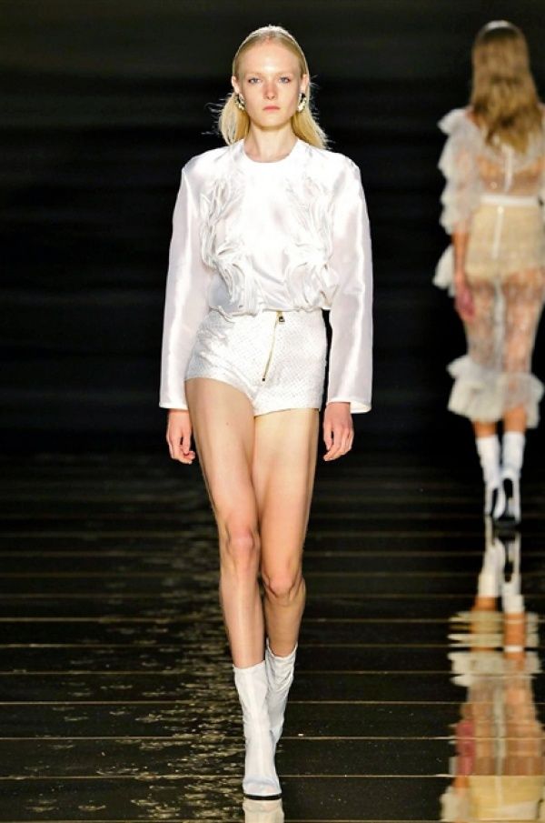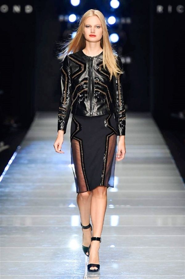 Della tradizione metallara di John Richmond restano gli immancabili giubbotti di pelle da motociclista, ma traforati e profilati di Swarovski. Grande spazio ad una serie di capi nude look che espongono seni e natiche “coperte” da tanga filiformi.