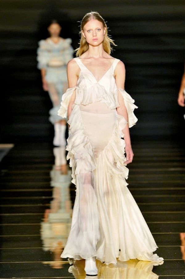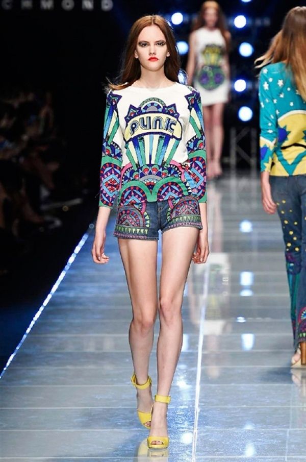 Ci sorprende John Richmond che per la prossima primavera- estate immagina una donna meno rock del solito. Stampe art dèco diventano ricami hippie sui jeans dove però c’è scritto “punk”. Imperano le camicette in seta col fiocco e grafiche optical . E per la sera? abiti lunghi e dritti anni ’20 di chiffon, trafori e cristalli. I colori di punta quelli della pop art, in particolare il giallo.